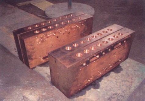 This machine is used for casting strips and alloys of copper. Two strands of cast strip can be produced at the same time. It consists of melting furnace, holding furnace, crystallizer, water cooling system, withdrawal system, coilers, hydraulic system and electric control system.